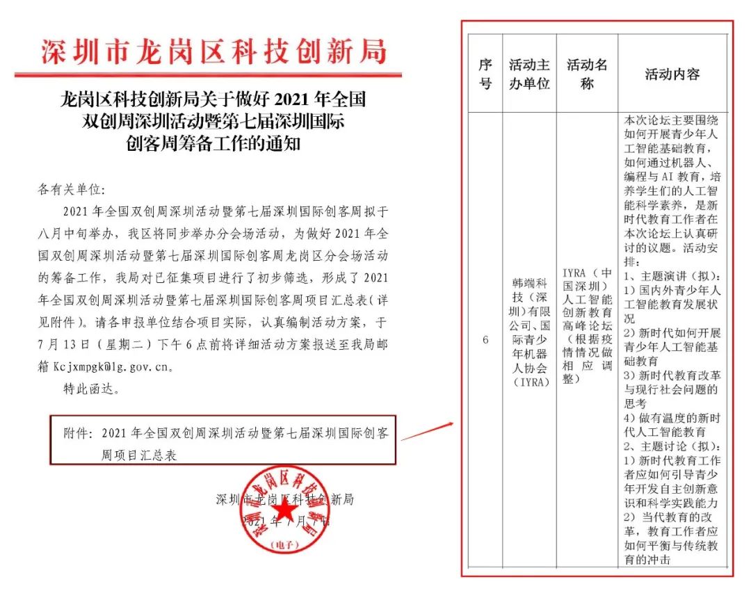 韓端科創(chuàng)科普項目入圍2021年全國雙創(chuàng)周深圳活動暨第七屆深圳國際創(chuàng)客周項目!