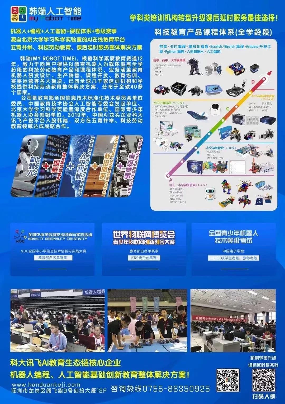 韓端機器人編程、人工智能基礎(chǔ)創(chuàng)新教育整體解決方案|學(xué)科類培訓(xùn)機構(gòu)轉(zhuǎn)型升級、學(xué)校課后延時服務(wù)的優(yōu)選合作伙伴!