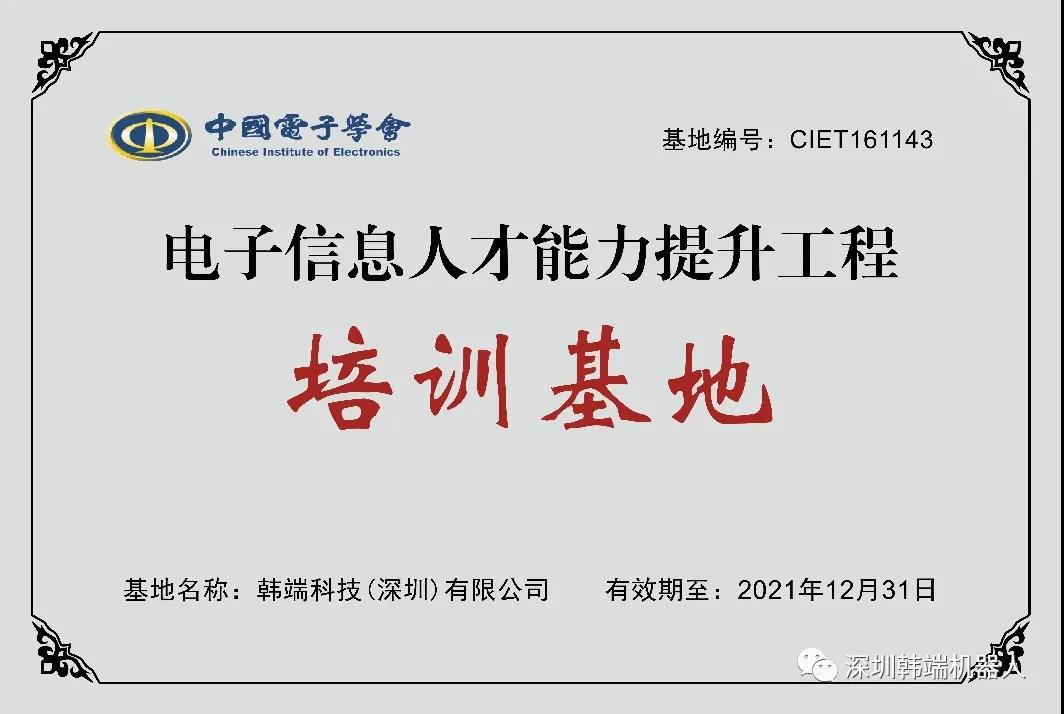 為進一步加強專業(yè)技術(shù)人才隊伍建設(shè),提升學(xué)校和培訓(xùn)機構(gòu)的教學(xué)服務(wù)能力,韓端科技(編號:CIET161143)作為中國電子學(xué)會“電子信息人才能力提升工程培訓(xùn)基地”定于2022年1月舉辦青少年機器人創(chuàng)客與教學(xué)指導(dǎo)力提升培訓(xùn)班。