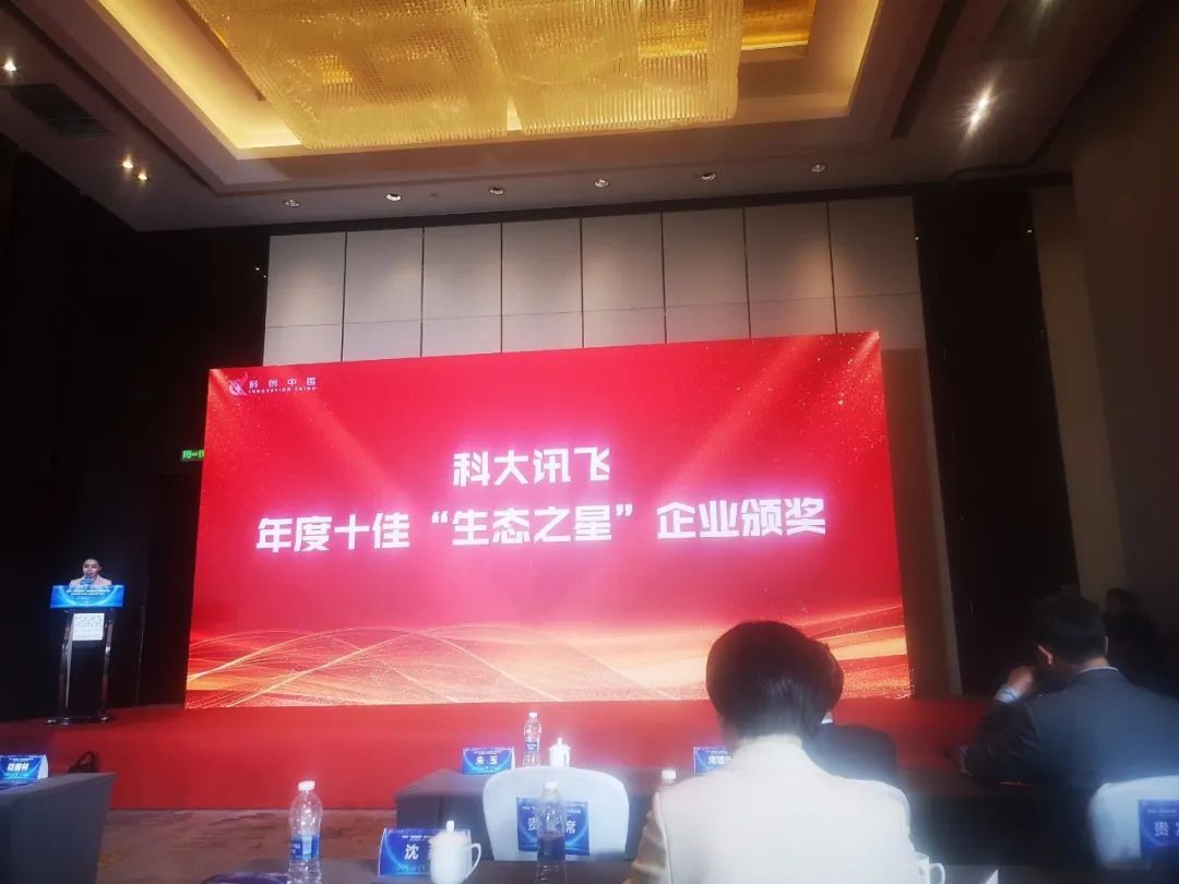 在高峰論壇上,韓端科技董事長鐘志剛先生作為科大訊飛年度”十佳生態之星”企業的發言代表受邀上臺發表了主題為“我們韓端,我們訊飛,因Ai而緣”的精彩演講,獲得了參會政府領導、科大訊飛領導和嘉賓的一致好評與贊許。