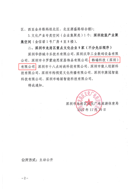 韓端科技獲深圳龍崗政府認(rèn)定重點文化科技企業(yè),啟航2023新征程!