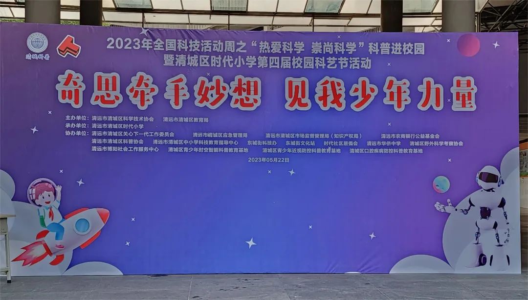 清遠市清城區時代小學隆重舉行“科創未來,美育人生”第四屆科技藝術節,本次科藝節活動得到了清城區科協、清遠市和清城區教育局、廣州美術學院、清遠職業技術學院、中國工程師社團聯盟(深圳市工程師聯合會)、深圳韓端機器人公司、廣州市云蝶科技有限公司、廣州市泰歌會、清遠市水文局、清遠市氣象局等單位的大力支持。