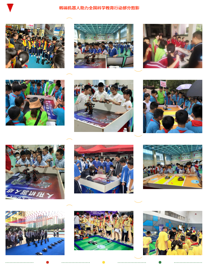 今年也是疫情放開后的第一年,韓端機器人義不容辭地配合呼應各地各學校單位貫徹落實“科技強國”發展理念,先后助力了清遠、東莞、深圳、廣州等大灣區及全國其他相關省市學校的科學教育行動,為科技教育貢獻自己的一份綿薄之力。