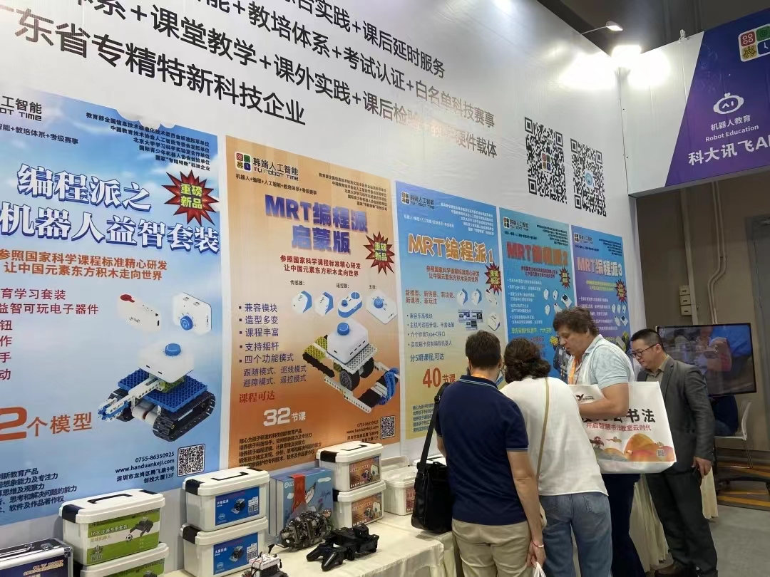同時,MRT系列智能教育硬件也已成功匹配科大訊飛人工智能教育平臺,該平臺亦是國家中小學智慧教育平臺的重要合作對象,全國中小學生可以使用MRT系列產品進行“機器人+編程+AI”常規課程學習,也可以參加各級教育部門公布的白名單科技競賽和研學實踐。韓端機器人和華嶺教育研究院是科大訊飛AI創新教育生態核心成員,此前多期中央電教館人工智能課程規模化應用試點工作交流活動和全國各地人工智能教育示范區示范校科技教師實訓活動都是由雙方緊密協作的。2024年,教育部部長懷進鵬同志在海南崖州專門視察調研了各方聯合落地的青少年人工智能教育實驗教室。