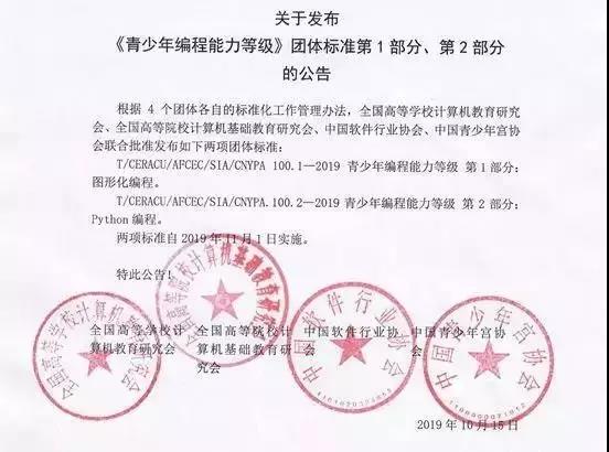 為深入貫徹《新一代人工智能發(fā)展規(guī)劃》、《中國教育現(xiàn)代化2035》中關(guān)于青少年人工智能教育的相關(guān)要求,推動青少年編程教育的普及發(fā)展,支持鼓勵青少年樹立遠大志向,放飛科學(xué)夢想,投身創(chuàng)新實踐,全國高等學(xué)校計算機教育研究會提出了《青少年編程能力等級》系列團體標準研究計劃,并于2019年10月25日順利召開了聯(lián)合發(fā)布會。