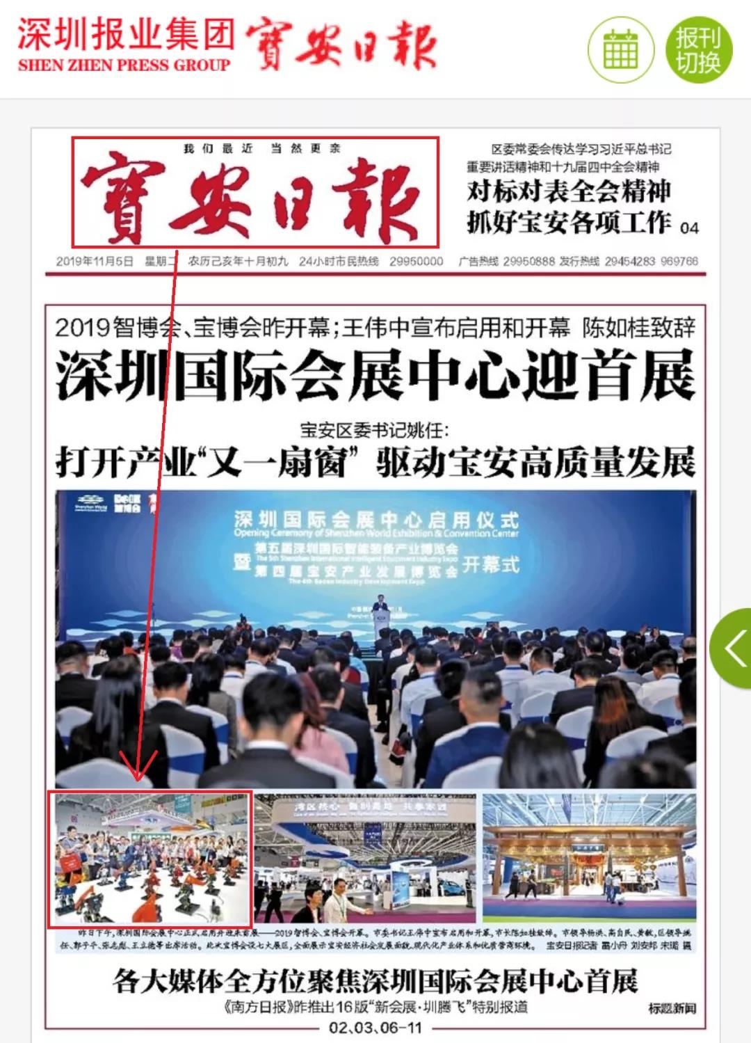 日前,2019寶安產業發展博覽會在深圳國際會展中心順利閉幕,韓端機器人攜帶人氣產品精彩亮相十大產業鏈展區核心位置,備受國家工信部、商務部及深圳市委市政府領導稱贊,寶安區委書記姚任同志帶領寶安區委區政府各級領導親臨韓端展位仔細觀摩指導,并被寶安日報重點報道。